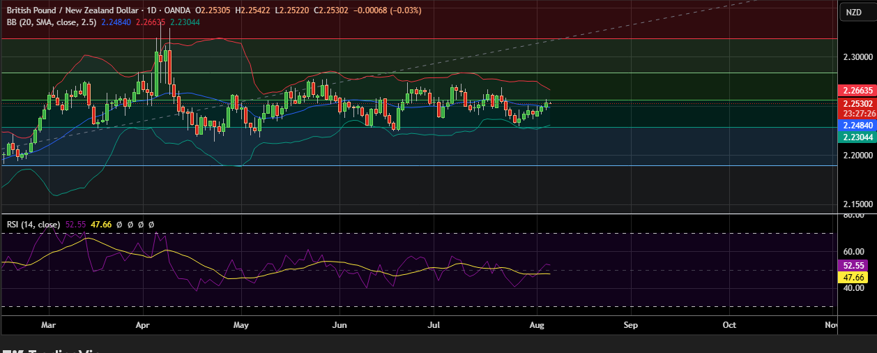 • Immediate resistance is located at 2.2562(50%fib), any close above will push the pair towards 2.2690(Higher BB)
