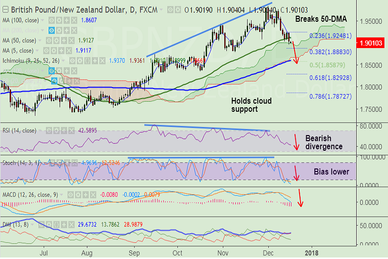 - GBP/NZD has shown a break below 50-DMA at 1.9119, bias lower.