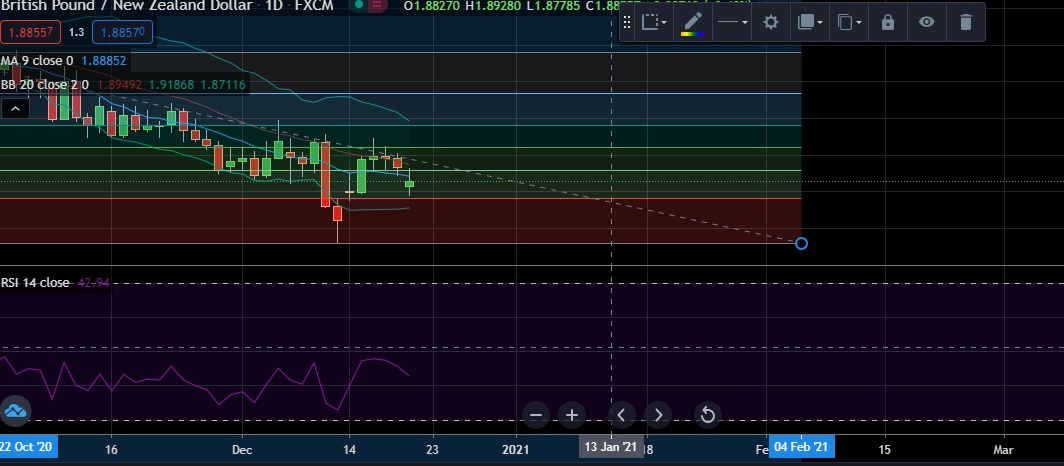 • GBP/NZD declined on Monday as uncertainties over Brexit talks weighed on sterling.