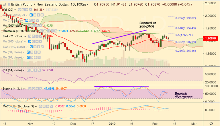 - Bearish divergence keeps scope for downside. However, breakout above 200-DMA will negate bearish bias.