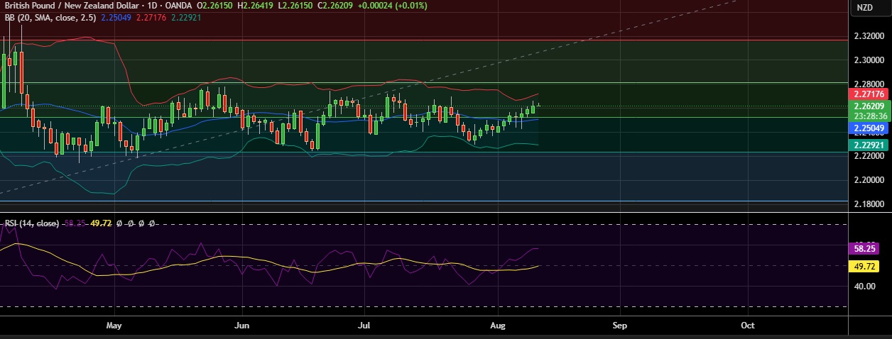 • Immediate resistance is located at 2.2713 (Higher BB), any close above will push the pair towards 2.2817(38.2%fib)