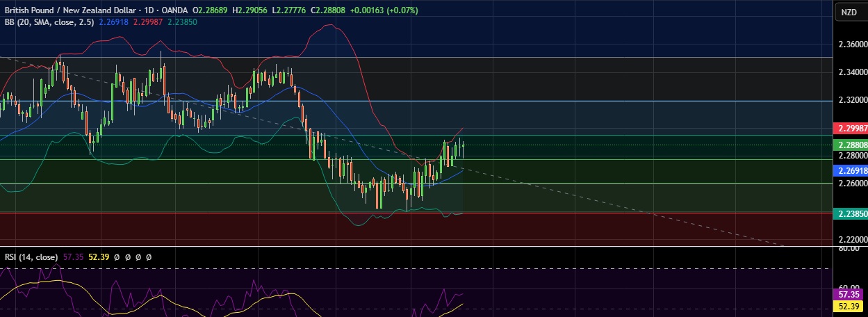• Immediate resistance is located at 2.2953 (61.8%fib), any close above will push the pair towards 2.2992(Higher BB).