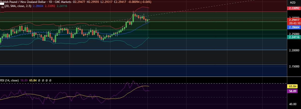 • Immediate resistance is located at 2.0320 (23.6 fib), any close above will push the pair towards 2.3390 (Higher BB).