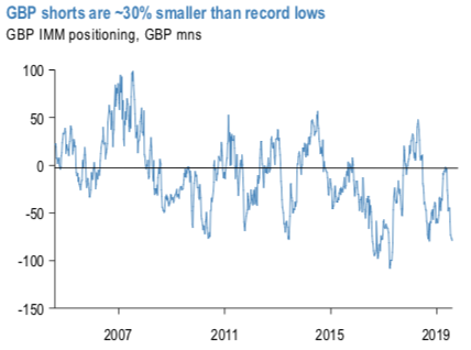 However, further weakening can certainly not be ruled out—Boris Johnson’s rhetoric is unlikely to soften in the near-term and as noted last week, investor shorts still ~30% smaller than their post-Brexit extremes (refer above chart). Hence we think it prudent to roll short GBP exposure into limited downside 30d/10d cable put spread.
