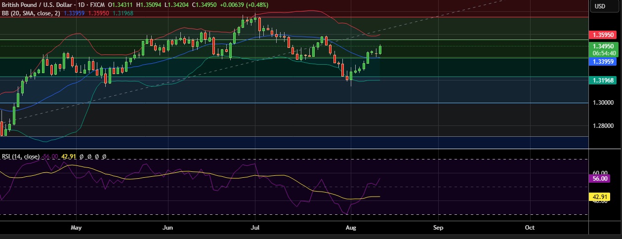 • Strong support is seen at 1.3393 (50 SMA) and break below could take the pair towards 1.3341(Aug 7th low).