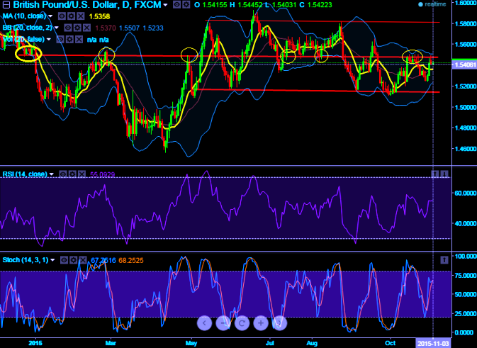It has been observed and kept urging that there would be range bounded swings on this pair where upper band is 1.58 which is maintaining as a resistance point while 1.5175 as support from last couple of months (From April).