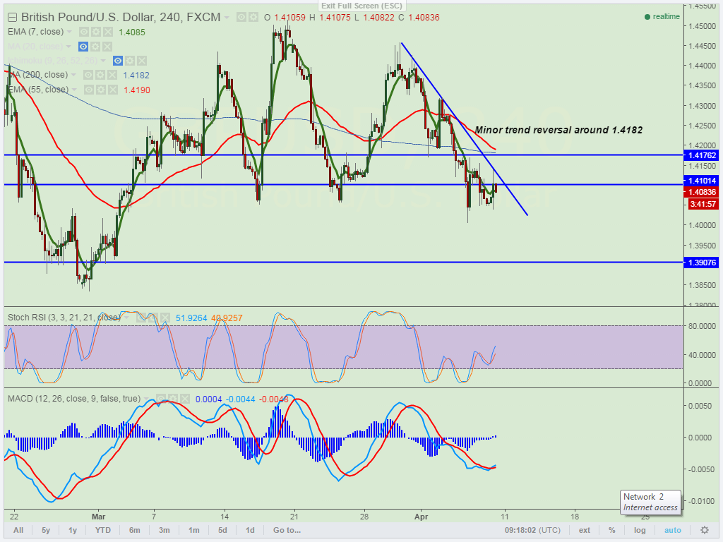 - The pair has slightly retreating after making a high of 1.4140. It is currently trading around 1.40968.