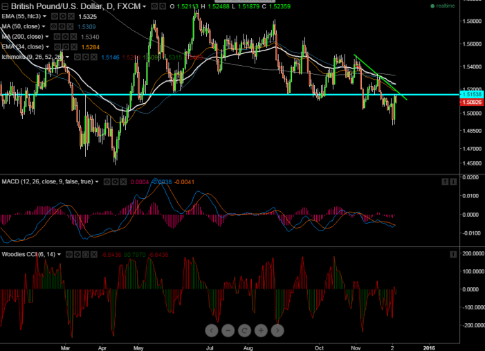 - Any further bullishness can be seen only above 1.5160 levels. Break above 1.5160 will take the pair to next level 1.5200 (trend line joining 1.54960 and 1.53350)/1.5220.