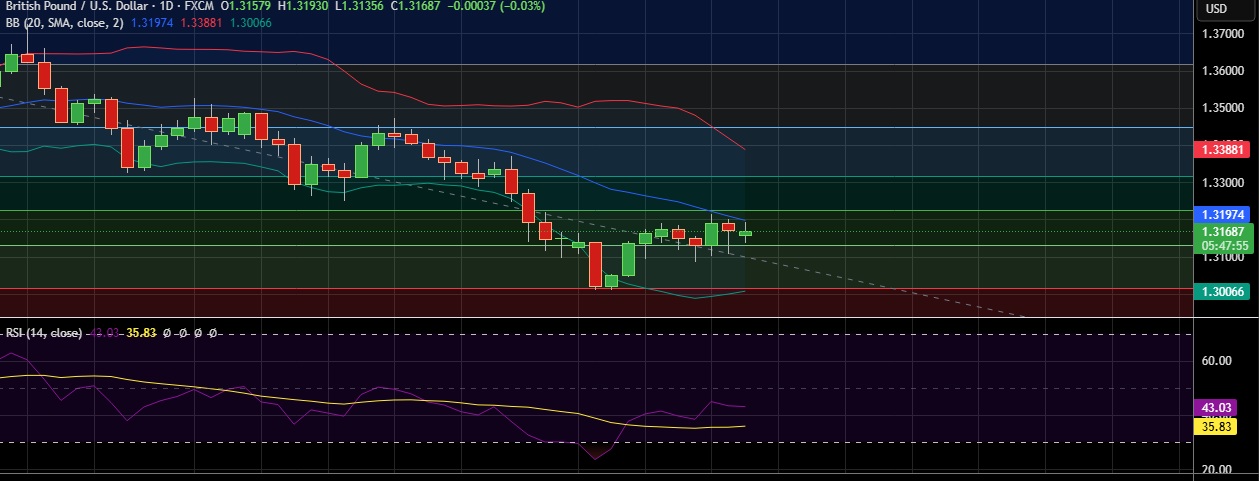 • Immediate resistance is located at 1.3198(SMA 20), any close above will push the pair towards 1.3222(38.2%fib)