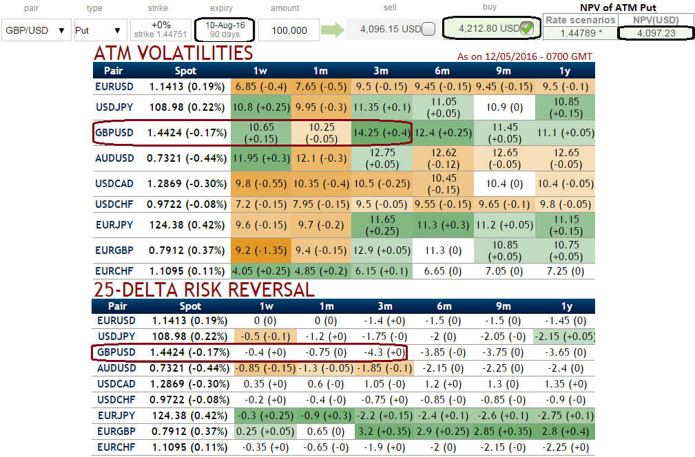 As the risk reversals for 1W-1M expiries also indicate that the puts have been relatively expensive and as stated above traders are willing to pay higher implied volatility prices as the strike price grows aggressively out of the money. Demand for GBP puts/USD calls have spiked on fears of UK exit from the EU.
