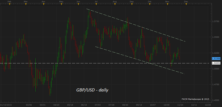 Naturally traders, scaled back their positions in favor of Dollar and Pound seemed at quite a high and lucrative. With Friday's drop marking the end of recent correction in Pound/Dollar from 1.505 area, the pair seems to be ready to test the channel floor, which makes sense in light of the coming hike.