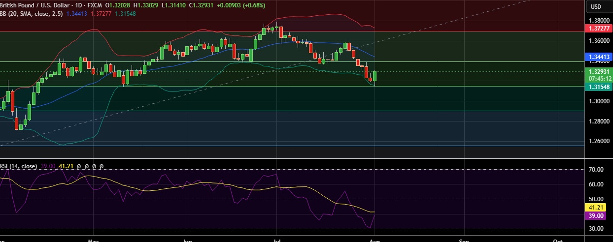 • GBP/USD rebounded strongly on Friday as dollar fell broadly after data showed US employers added fewer jobs in July than economists had expected, while the unemployment rate moved higher in line with expectations.