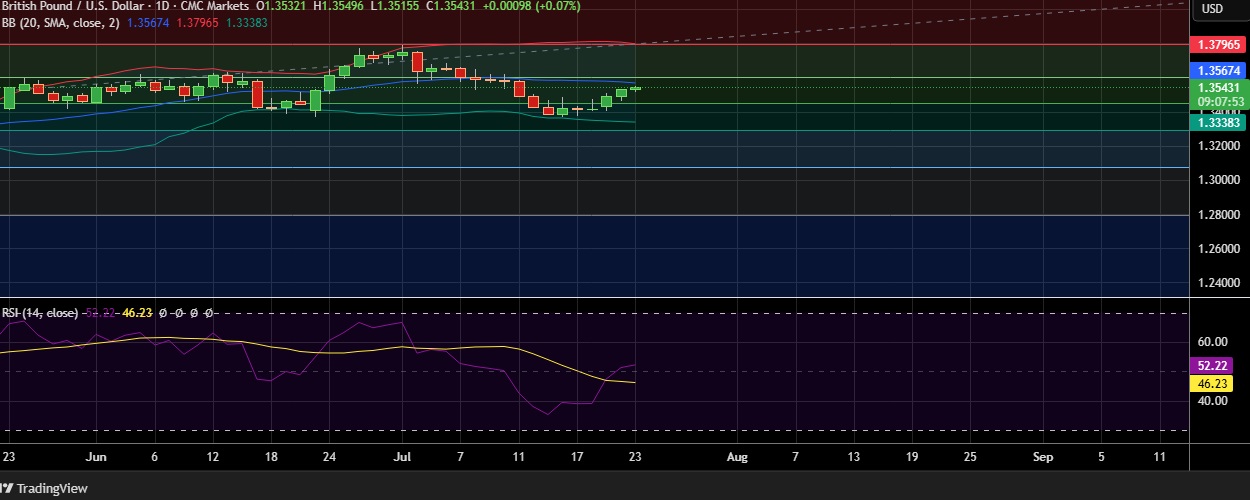 • Immediate resistance is located at 1.3573(SMA 20), any close above will push the pair towards 1.3573(SMA 20)