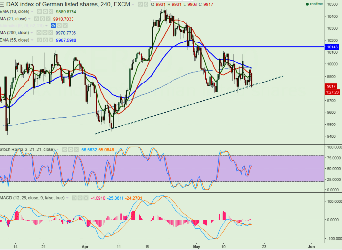 - DAX has made a high of 9963 and started to decline from that level. It is currently trading around 9845.