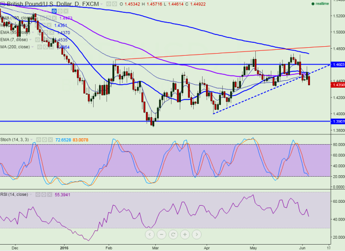 - The pair has currently broken the low made on 1.43850 (Jun 1st low) and declined till 1.43516.