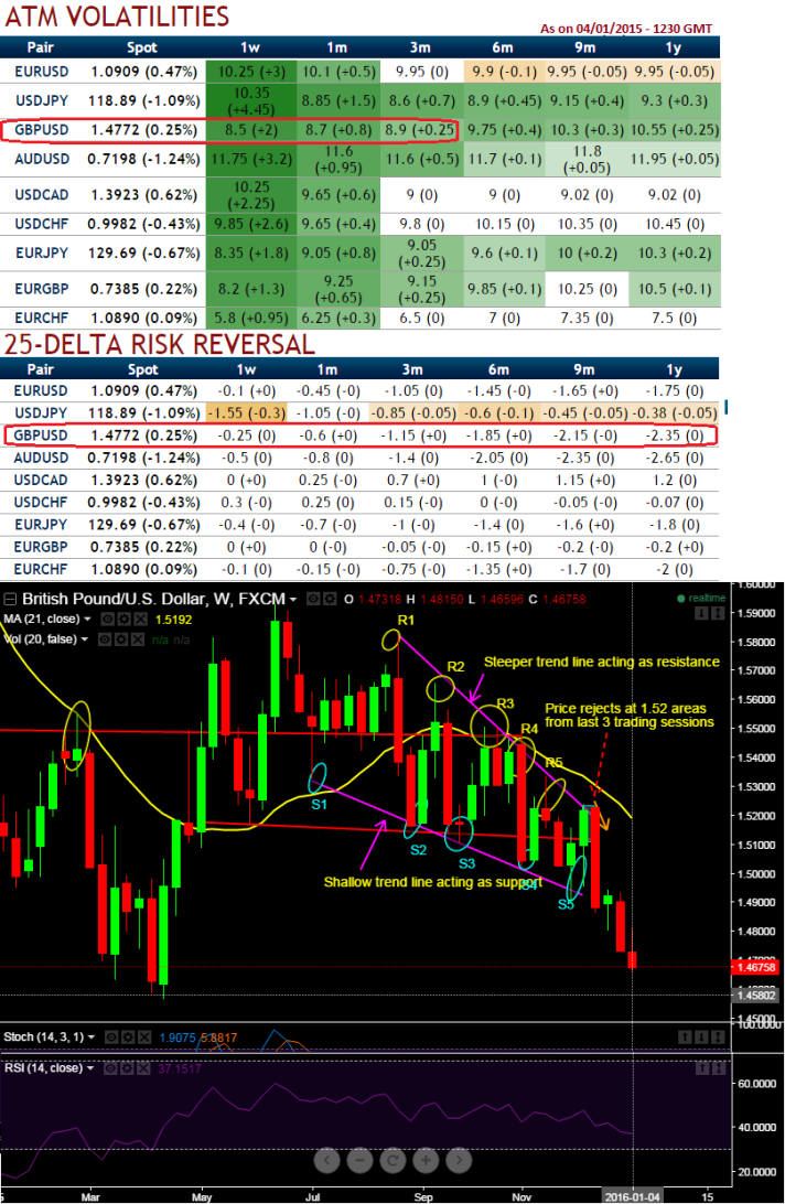Hence, pondering over the breakout of falling wedge base, the sliding downwards sharply, and FX OTC market sentiments for this pair we recommend shorting near month futures for target at 1.4615 with a stop loss at 1.4805, thereby observed handsome risk reward ratio.