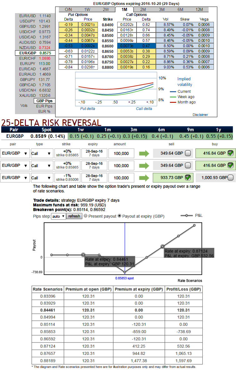GBP fell further than expected in the aftermath of the UK vote to leave the EU and after the MPC eased policy at the start of August. Since then, a bounce in economic indicators has been accompanied by a GBP bounce to levels where fresh shorts, vs EUR, are attractive.