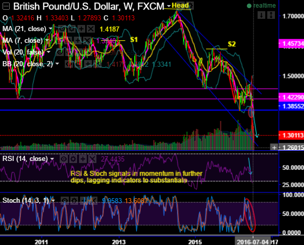 Supports in GBP/USD are broken, one after another, which is symptomatic of downside momentum ramping up. Indeed, after breaking below the 35-year support zone of 1.3850/1.35 and therefore confirming a massive Head and Shoulder pattern, GBP/USD just breached 1.30, the 76.4% retracement of the uptrend which took place from 1985 low to 2007 high.