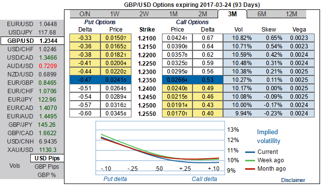 Owing to the above fundamental factors, GBP vols and risk reversals have been unchanged but to remain negative flashes to mitigate bearish risks in long run, while IV skews are also bidding OTM put strike which is line with the risk reversal indications.