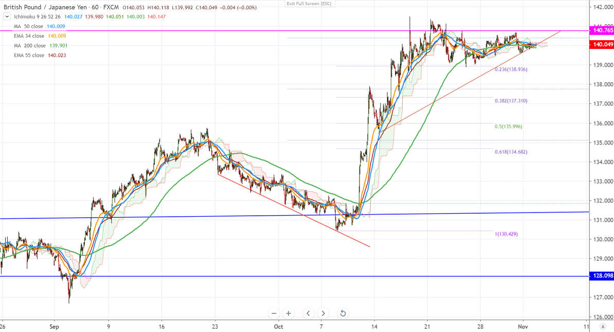 Technically, near-term support is around 139.50-60 and any violation below will drag the pair down till 138.80. The jump from 130.50 will get completed at 141.50 only if pair trade below 138.80.