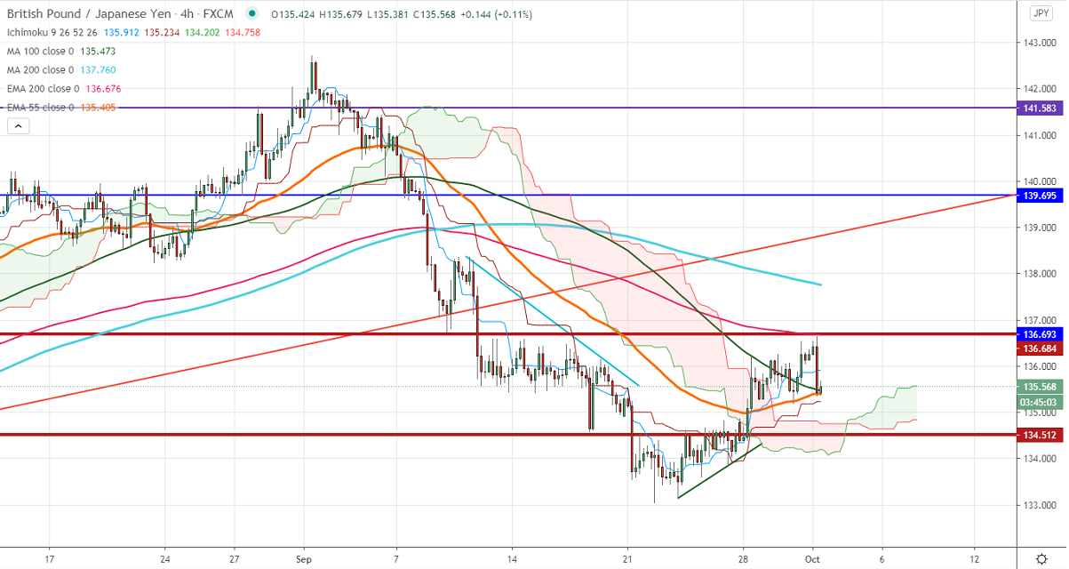 The pair is facing strong resistance around 136.69 (200-4H MA) and any violation above that level will take the pair till 136.90/137.80 (200-4H MA). It is facing strong support at 135.50, any indicative below that level targets 135/134.60/134/133.