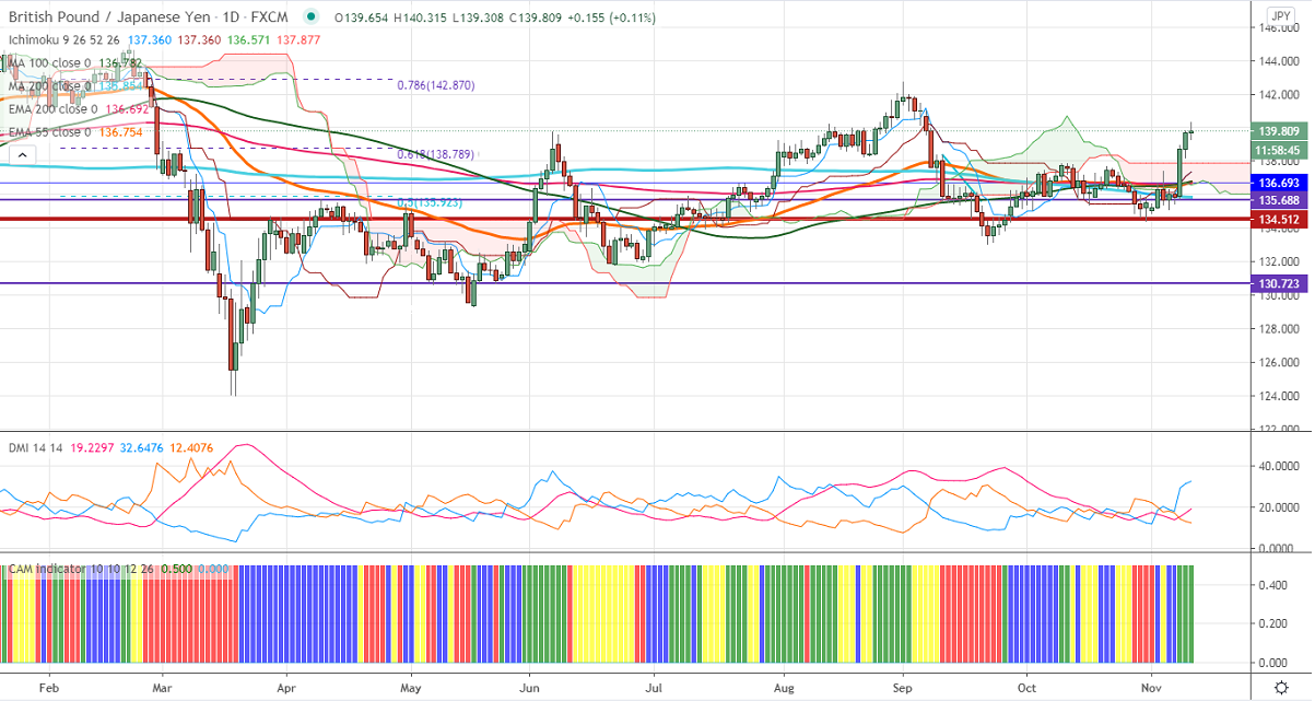 GBPJPY is trading higher on the weak yen. The COVID-19 vaccine optimism has decreased demand for Safe-haven assets like yen. USDJPY recovered sharply and holding above 105 levels. Any violation above 105.85 targets 106.60/107. The intraday trend is slightly bullish as long as support 136.80 holds.