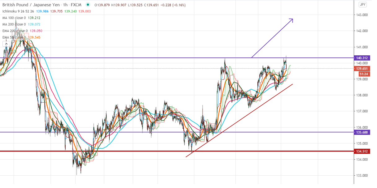 GBPJPY is holding above 140 levels on the strong Pound sterling. GBPUSD trades well above 1.3400 as UK approves Pfizer and BioNtech COVID-19 vaccine. The broad-based US dollar selling on upbeat global sentiment. US ISM manufacturing index came at 57.5 in November slightly less than the estimate of 58. UK final manufacturing PMI surged to 55.6 in November vs forecast of 55.2. The intraday trend of GBPJPY is bullish as long as 139 holds.