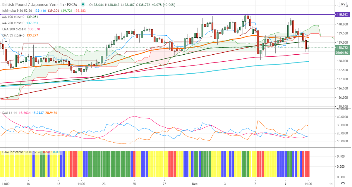 The pair is trading well below 100- 4H MA, any violation below 138.50 will drag the pair till 137.90/137.19. On the higher side, near term resistance is around 139.40, and any indicative break above targets 140/140.50.