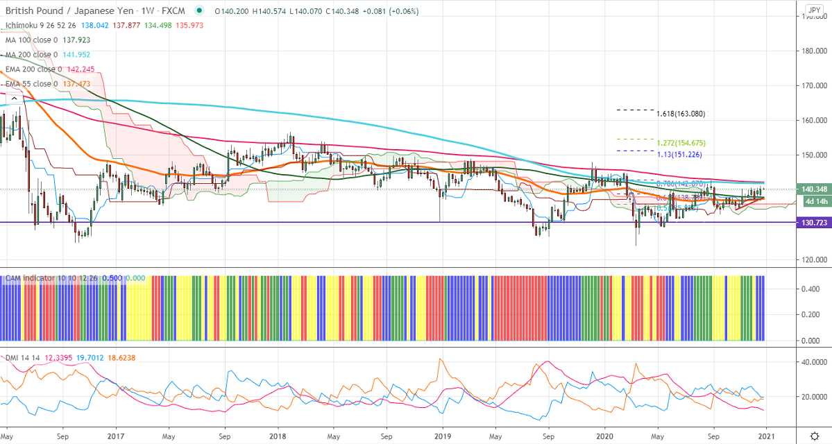 GBPJPY hits three weeks high at 141.21 on the strong pound sterling. GBPUSD was one of the best performers the previous week after the EU and UK reached a post-Brexit deal. The pair is holding well above the 1.3500 level, any violation above 1.3625 confirms bullish continuation. The intraday trend of GBPJPY is bullish as long as support 139.50 holds.