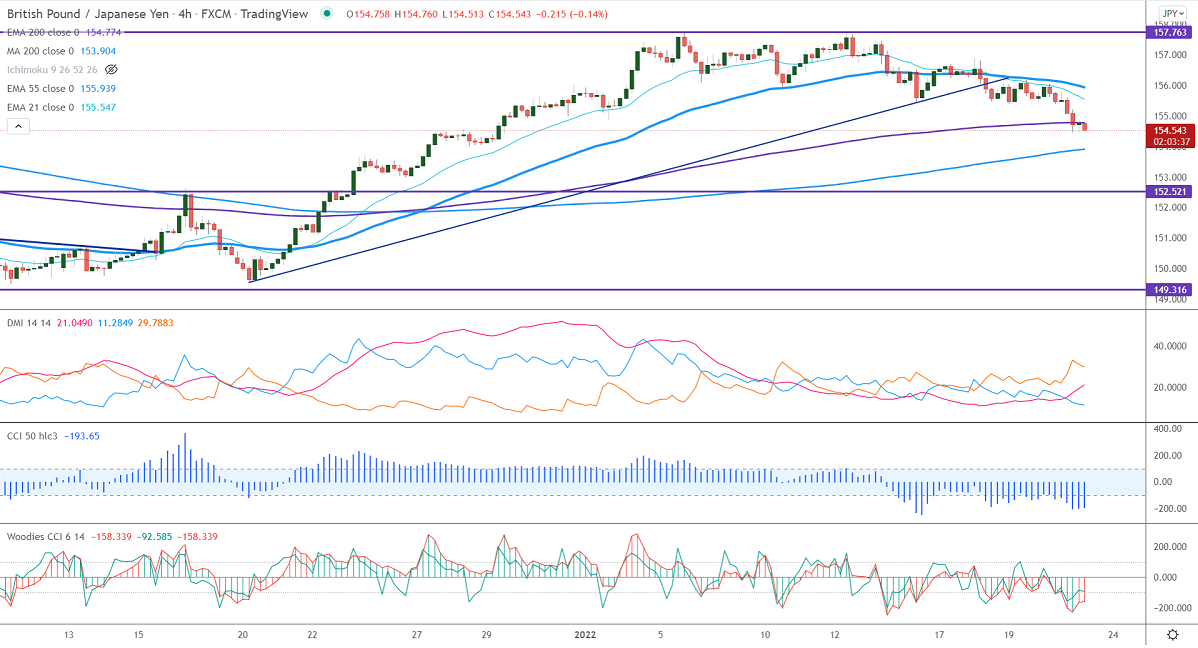 GBPJPY continues to trade lower on weak UK retail sales. It has slumped by 3.7% in December much below the estimate of -0.6%. The Pound sterling declined after a minor pullback to 1.36014. Any breach below 1.3570 confirms further bearishness. The intraday trend of GBPJPY is bearish as long as resistance 155.40 holds. GBPJPY hits an intraday low of 154.57 and is currently trading around 155.57.