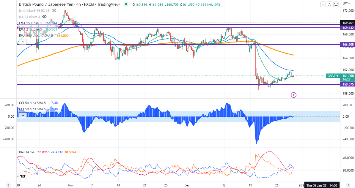 The near-term support is around 158.50, a breach below targets 157/156. The immediate resistance is around 162.80, a jump above will take the pair to 163.50/165.