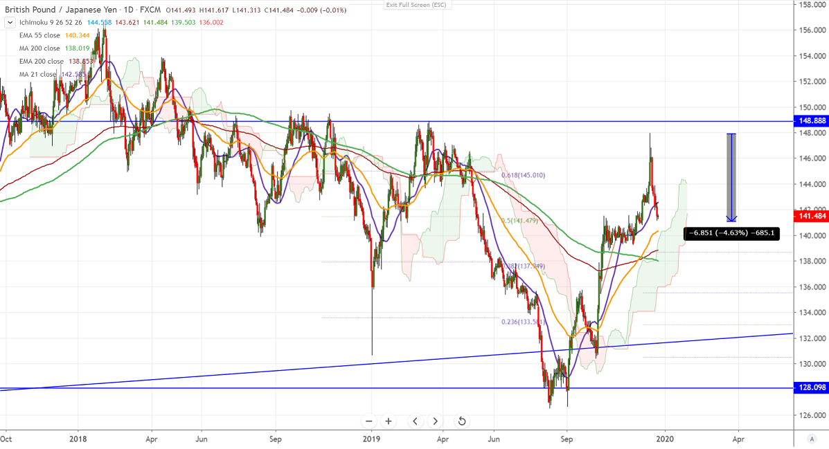 FxWirePro: GBPJPY downside capped by 50- day MA, good to sell on rallies