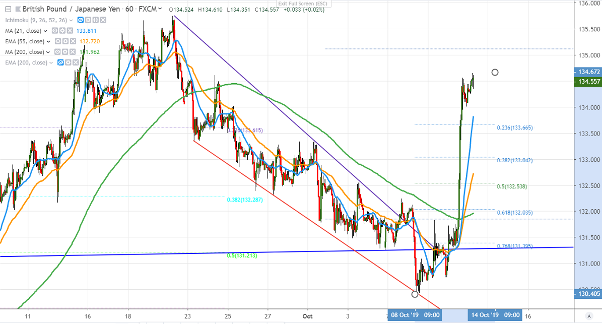 GBPJPY is one of the best performers yesterday and has jumped more than 300 pips on the strong Pound sterling. GBP rebounded strongly after UK PM Boris Johnson and Irish counterpart said that "both continue to believe that a deal is in everybody's interest". It has recovered more than 250 pips and hits a high of 1.24686.
