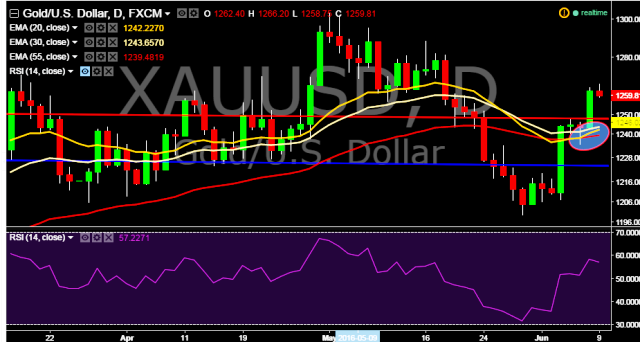 We prefer to take long position in XAU/USD around $1,255, stop loss $1,248 and target $1,272/ $1,282 marks.