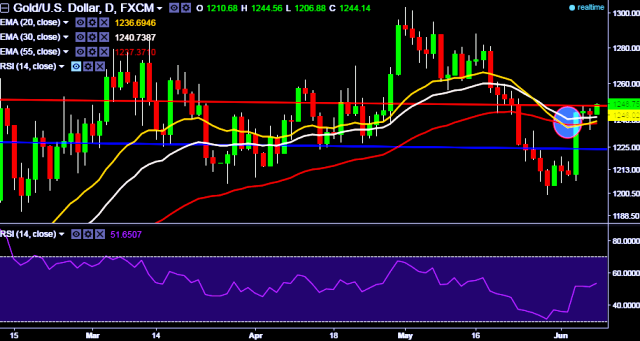 We prefer to take long position in XAU/USD only above $1,248, stop loss $1,238 and target $1,268/ $1,282 marks.