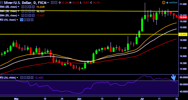We prefer to take short position in XAG/USD only below $19.88 with stop loss at $20.05 and target of $19.45.