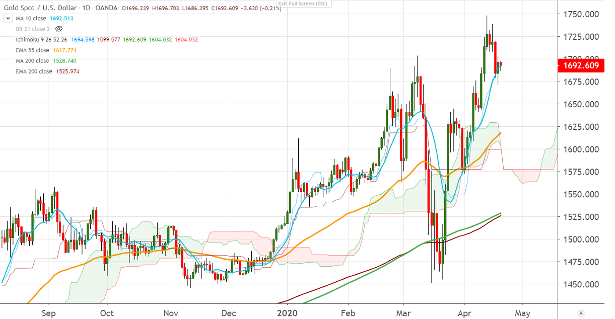 The immediate resistance is around $1700, any indicative break above targets $1725/$1740.