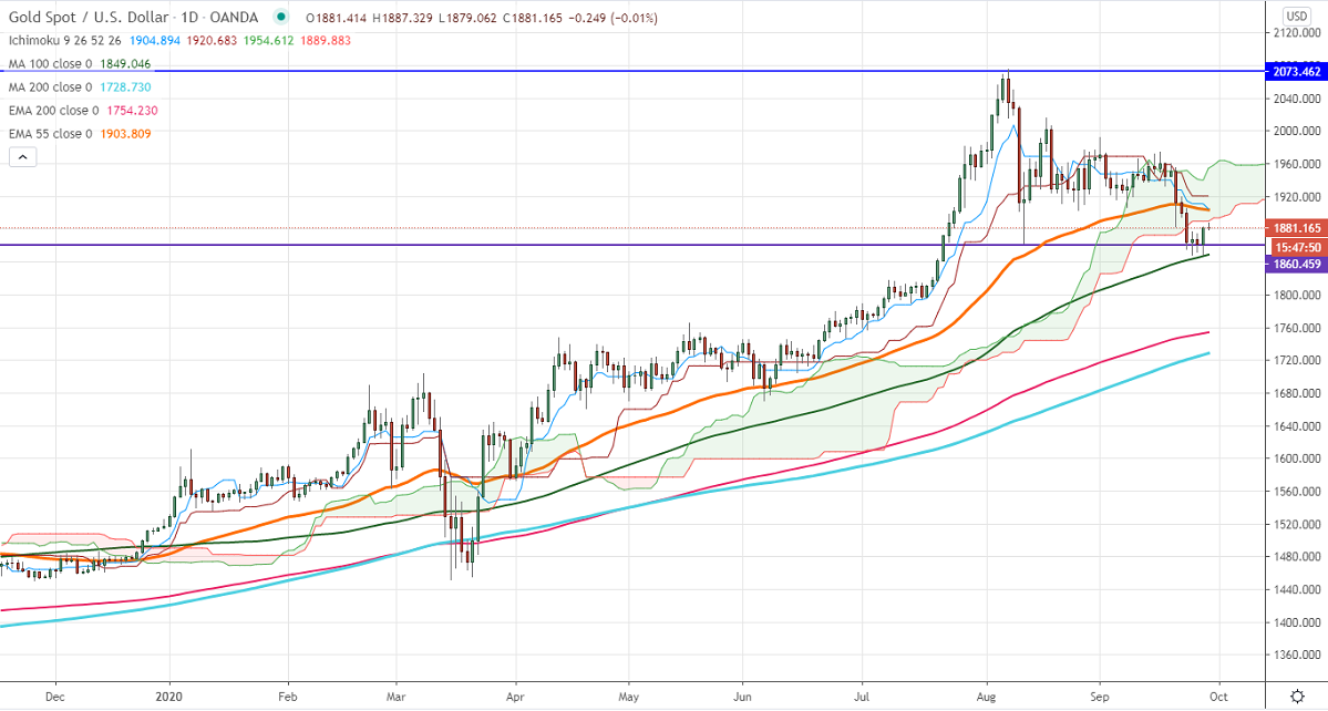 The gold took a u-turn from a low of $1848 on slight weakness in the US dollar. The increase in the number of coronavirus across Europe and the UK is supporting the yellow metal at a lower price. The total number of confirmed coronavirus cases was 335 lakhs and 10.06 lakhs deaths worldwide. Markets eye US Non-Farm payroll data to be released for further direction. The yellow metal surged till $1887 and is currently trading around $1881.80.