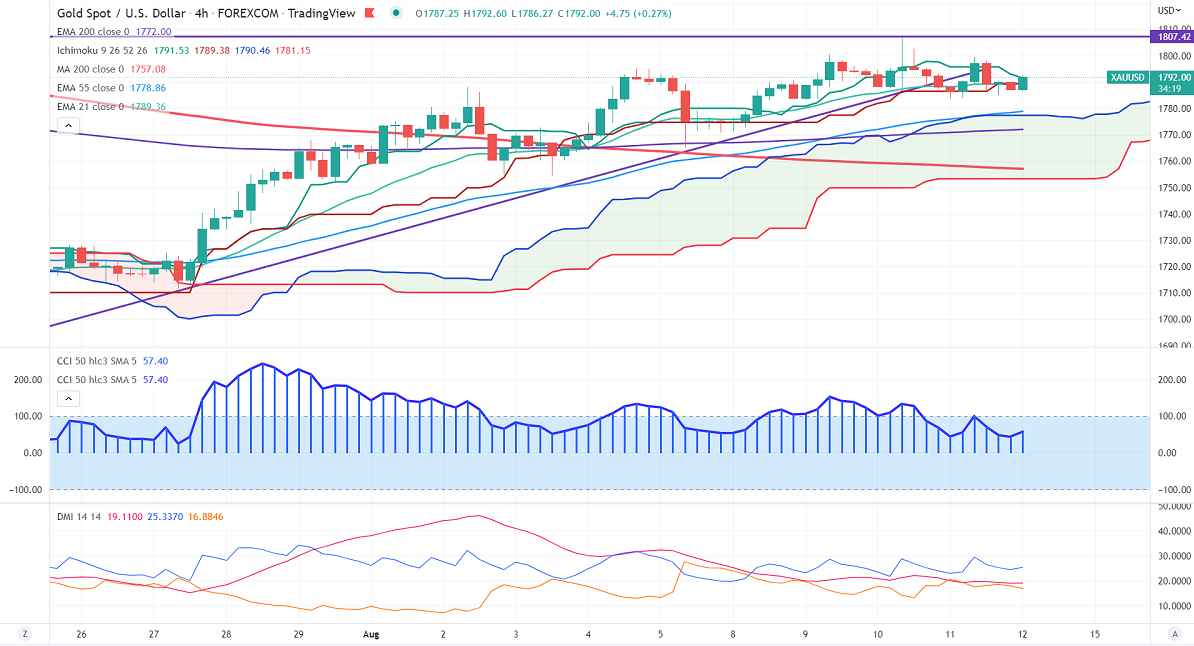 Gold price regained after a minor decline to $1783 on weak US PPI data. It fell by 0.5% in July for the first time since the COVID pandemic compared to a forecast of 0.2%. US dollar index halted its weak trend and showed a pullback above 105 despite the PPI miss. Markets eye geopolitical tension between China and Taiwan for further direction.