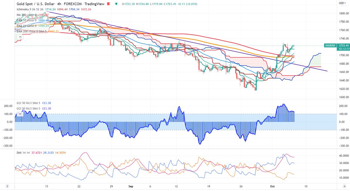 Gold jumped sharply and holds above $1700 on the weak US dollar. The lackluster performance in US treasury yields and increased demand for safe-haven assets like gold on rumors of Credit Suisse collapse. The DXY rebounded slightly after hitting a low of 110.06 any close confirms further bearishness.