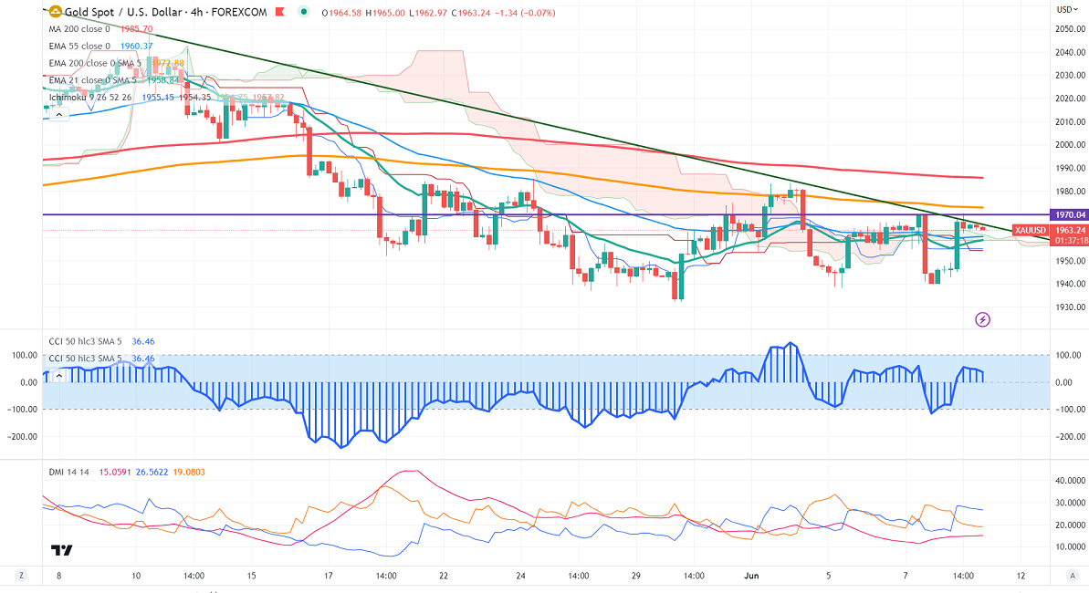 Gold prices trading in a narrow range between $1938.40 and $1970.25 for the past four days. The minor sell-off in the US dollar and US treasury yield supports the yellow metal at a lower level. It hits a low of $1970.50 yesterday and is currently trading around $1963.28.
