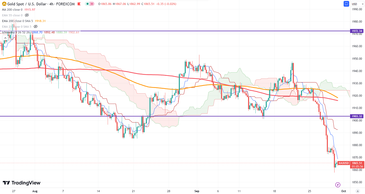 Gold lost its shine on the strong US dollar. It hit a low of $1857.73 yesterday and is currently trading at around $1864.96.