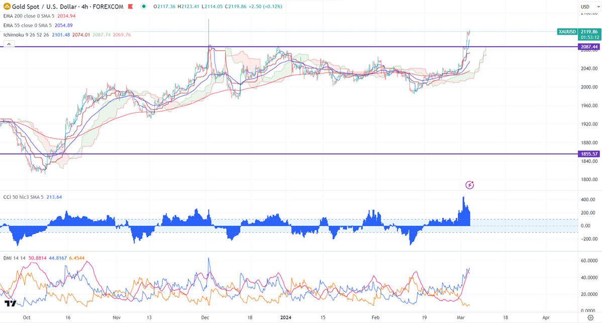 Gold continues to trade higher and hit a fresh year high in hopes of a rate cut by the Fed. Markets eye the Fed chairman testimony tomorrow for further direction. The yellow metal hit a high of $2119.97 yesterday and is currently trading around $2118.65.