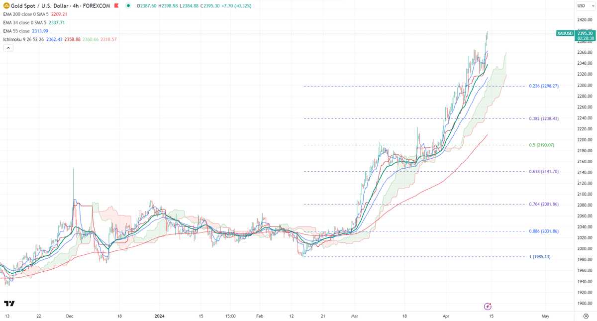 Gold hits an all-time high despite a surge in US treasury yields. The yellow metal hit a high of $2319 yesterday and is currently trading around $2336.84.