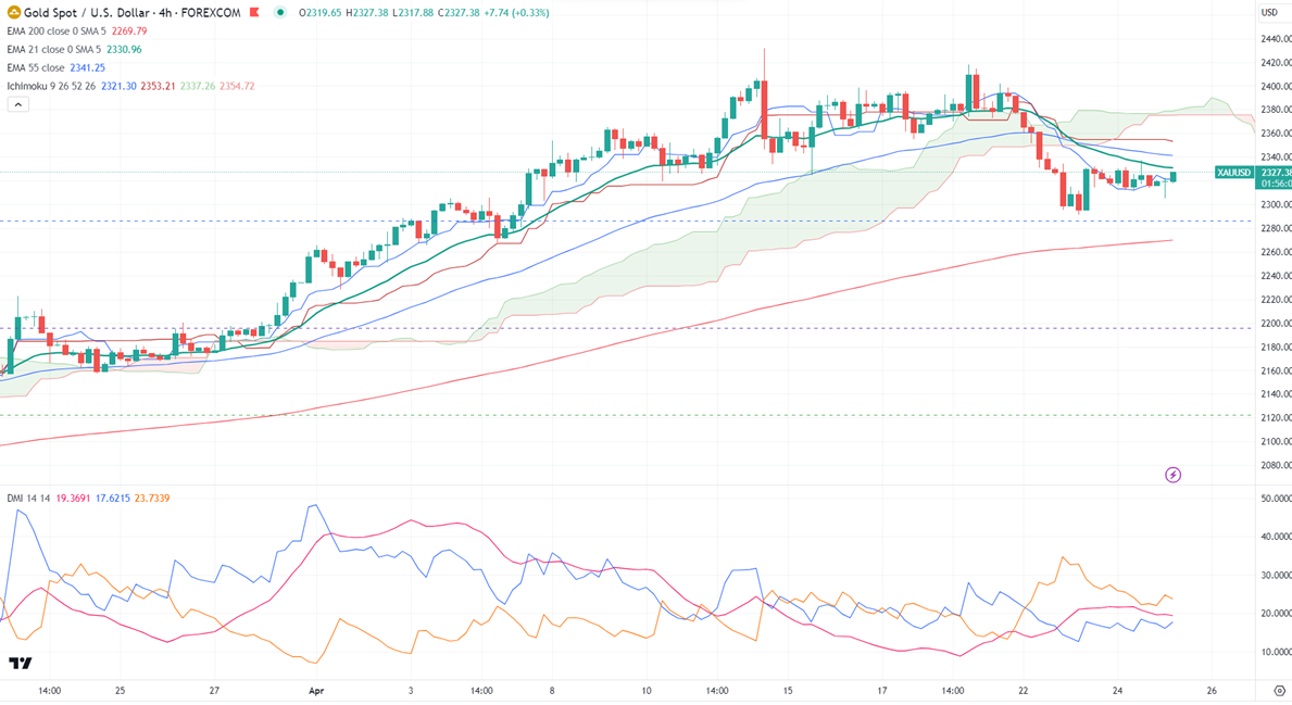 Gold trades in a narrow range after a massive sell-off.It hit a high of $2337 yesterday and is currently trading around $2320.86.