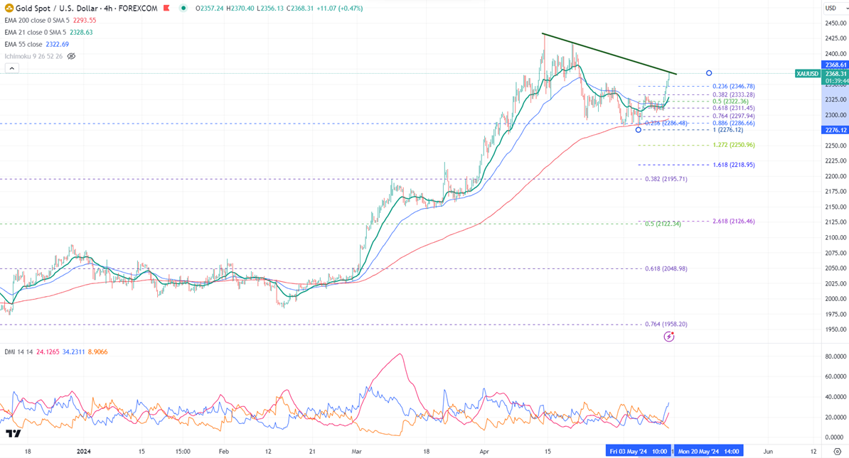 It is good to buy on dips around $2330-32 with SL around $2315 for a TP of $2400.