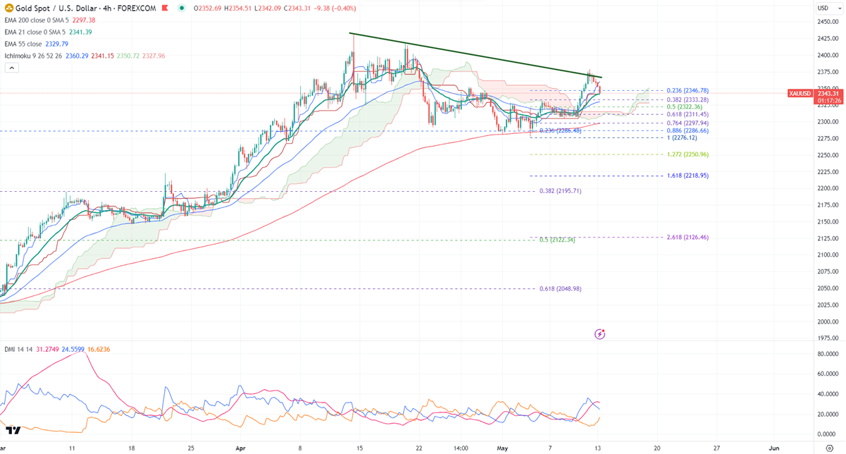 Gold lost its shine on the strong US dollar. It hit a low of $2346 at the time of writing and is currently trading around $2348.50.