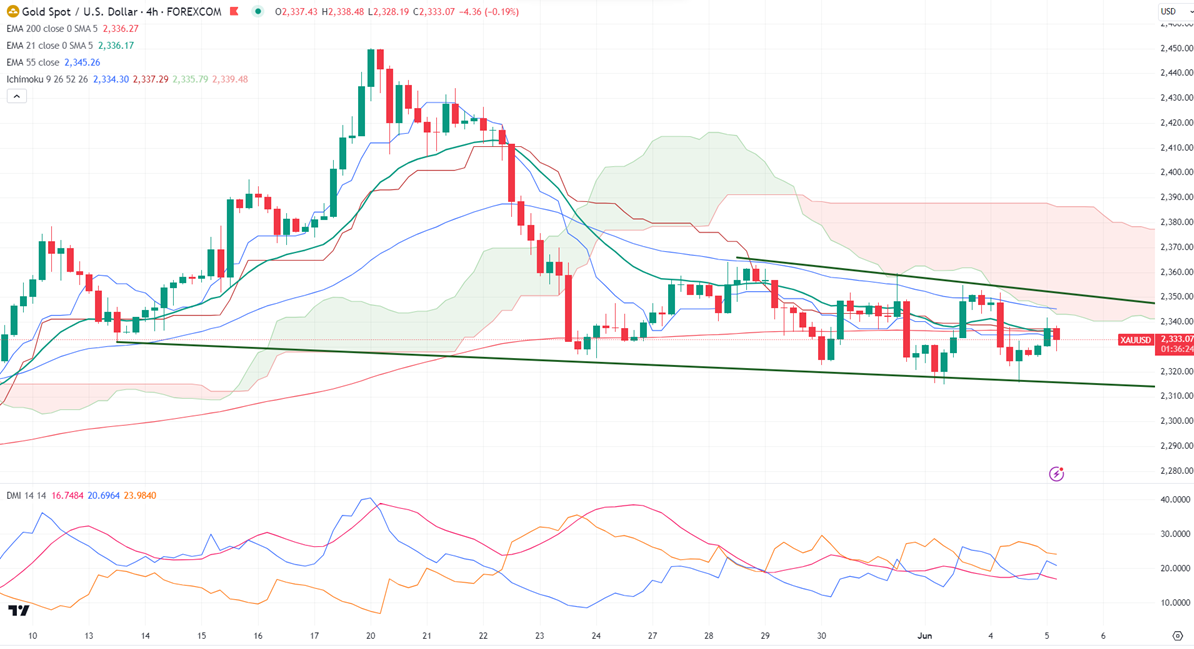 Gold trades flat ahead of US ADP employment data. It hit a low of $2315 yesterday and is currently trading around $2332.50.