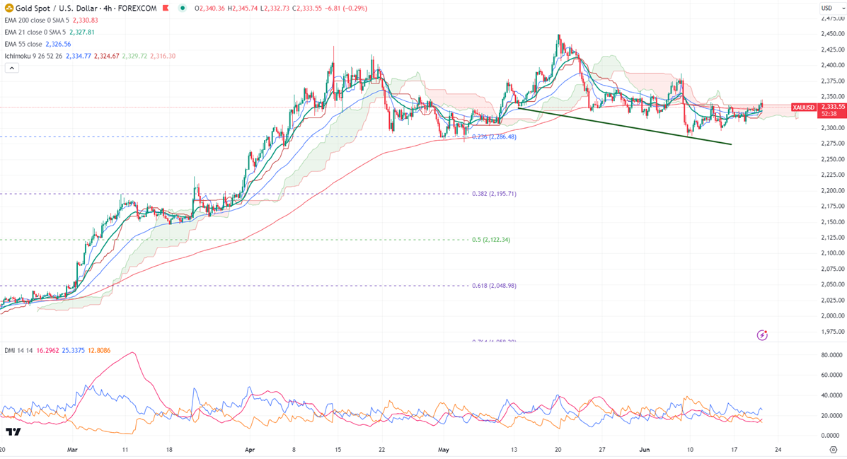 Gold showed a minor pullback after the SNB monetary policy. It hit a high of $2345.74 at the time of writing and is currently trading around $2341.