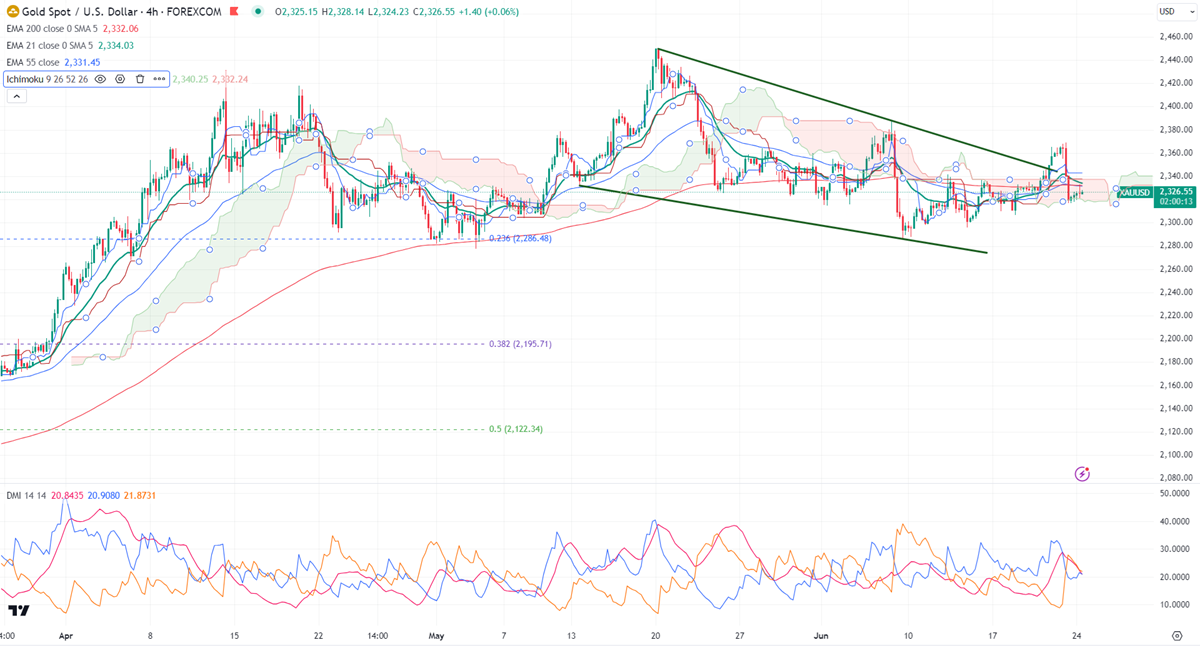 Gold declined sharply after an upbeat US flash PMI. It hit a low of $2316 yesterday and is currently trading around $2327.